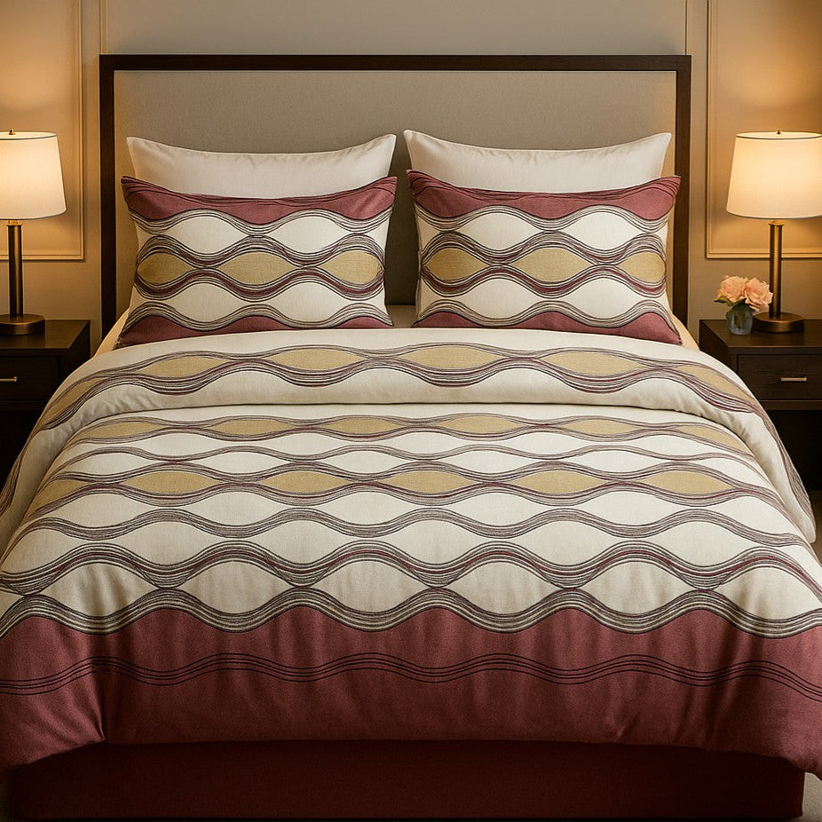 Wine Interlock Double Comforter Set – 6-Piece Cotton Blend Bedding