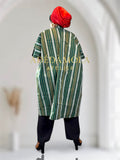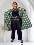 Royal redefines traditional elegance with a modern twist. Its bold green and gold stripes speak of heritage and prestige, while the relaxed yet structured silhouette drapes beautifully over any outfit- from tailored pants to flowing dresses. Designed as a statement of effortless sophistication, this piece is perfect for both everyday chic and special occasions.