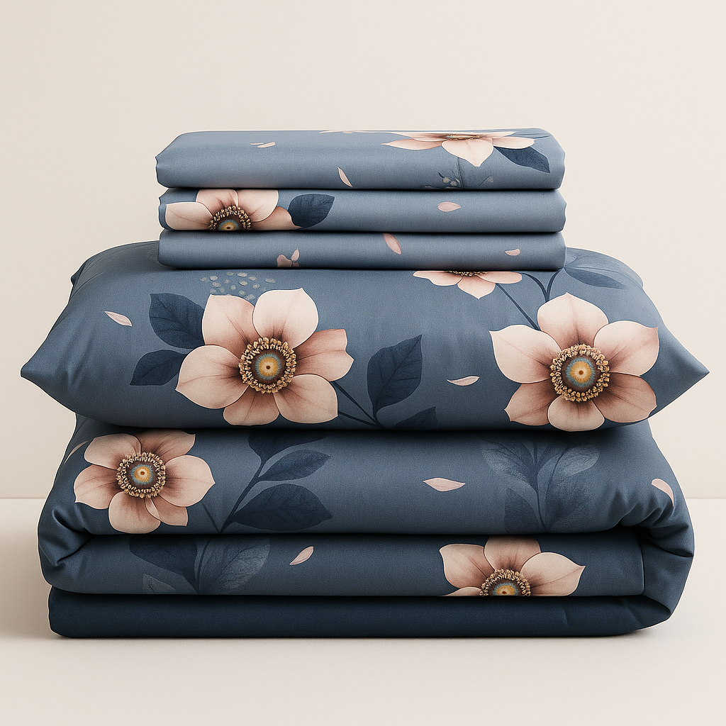 Wrap yourself in the soft serenity of nature with Blossom Drift, a luxurious 6-piece bedding set designed to bring the calming beauty of a garden into your space. Set against a gentle blue gradient backdrop, delicate blush-toned flowers bloom with grace, giving your room a warm and restful vibe fit for a 5-star suite.