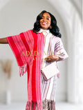 With its free-flowing, one-size silhouette, Ola effortlessly flatters every shape, combining comfort, culture, and luxury in one statement look. The striking crimson and ivory tones exude power and elegance, making this Bùbá the perfect choice for weddings, celebrations, or simply standing out with grace.